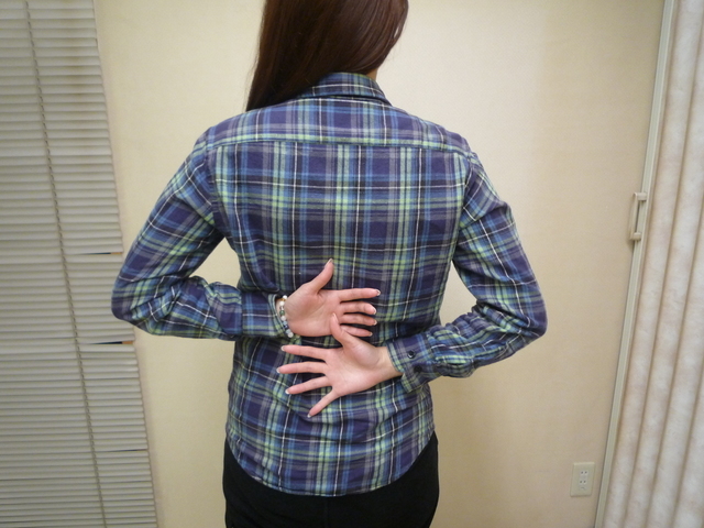 肩が内に巻いている方が、余計に後ろに回りにくい。